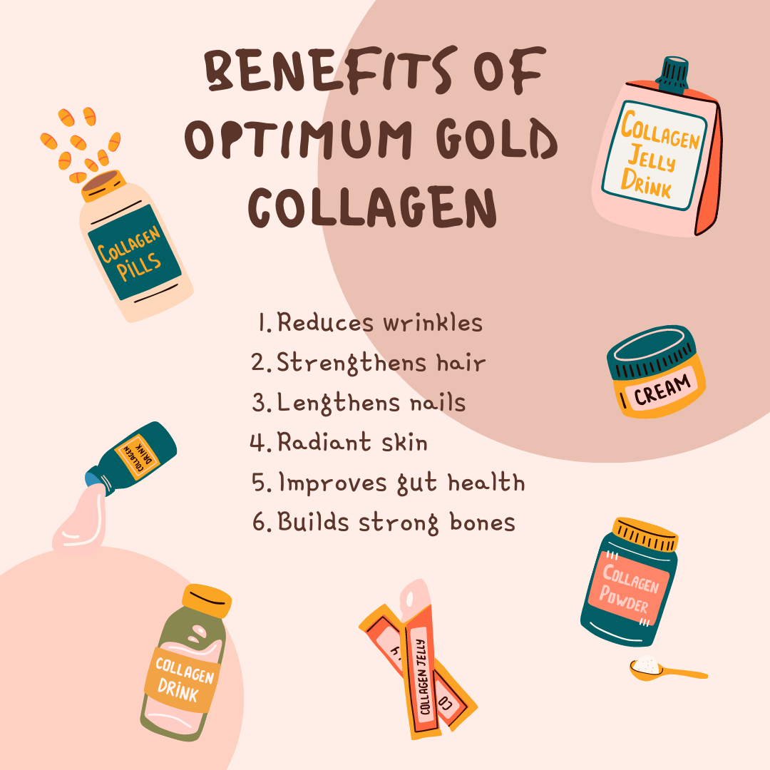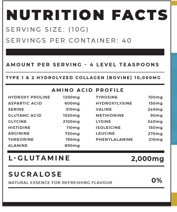 Optimum Gold Collagen with L-Glutamine is a pure agglomerated grass-fed bovine collagen protein-peptide Type 1 & 3, which are over 90% protein and contain 18 essential amino acids. This helps make your bones denser, to support slowing the ageing process that can make the bones brittle and helps your body to produce new bone. In addition, it can improve skin hydration and elasticity, which might also help to lessen wrinkles.
